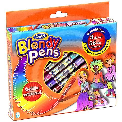A Blendy Pens kreatív filctollakkal szuper színátmeneteket készíthetsz a divat világában. A csomag 8 féle filctollat tartalmaz, amivel összesen 56 féle átmenet készíthető a 3 db figurára és a 32 féle kiegészítőre.