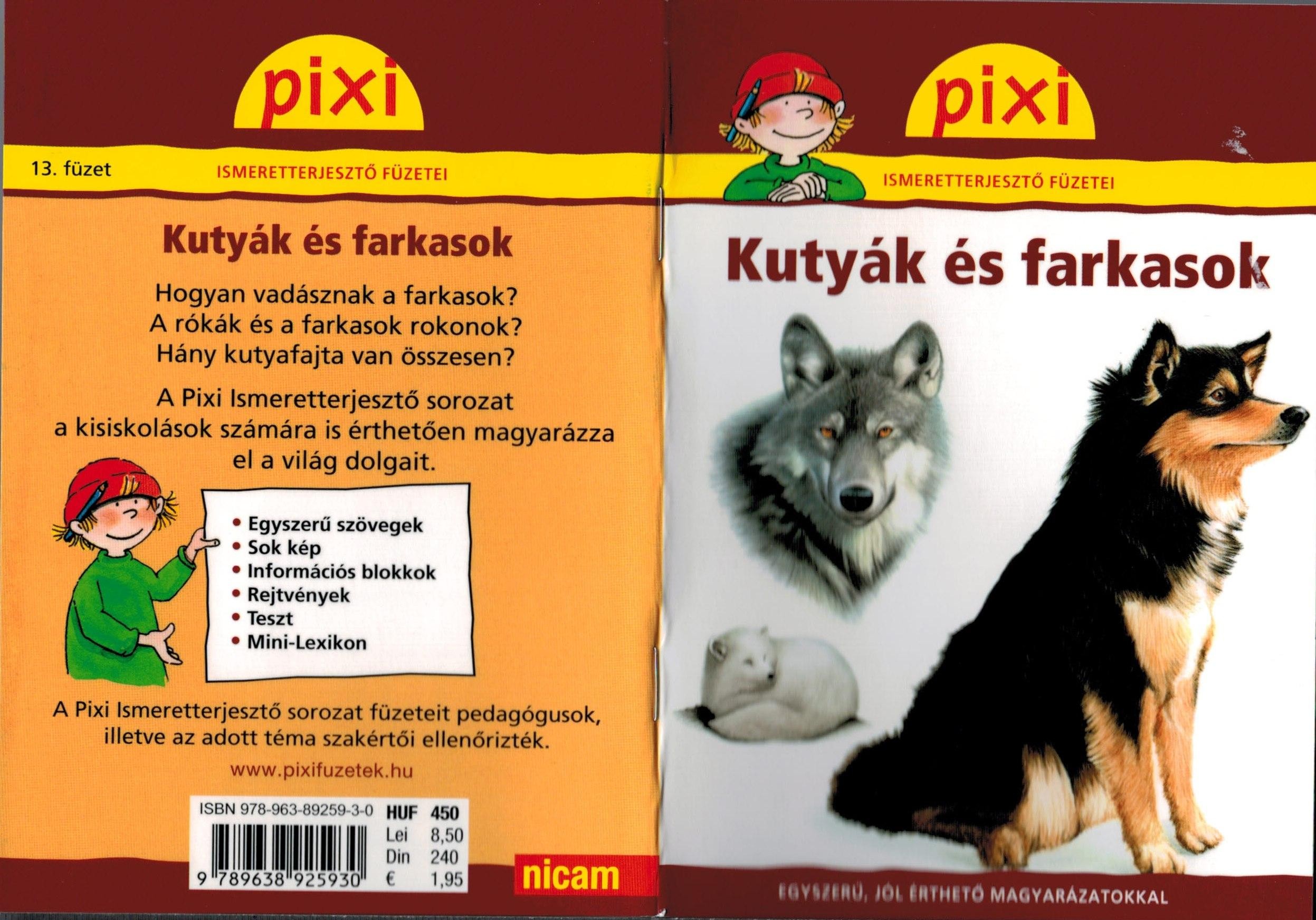 A Pixi Ismeretterjesztő füzetek ezen részéből - a többi között - azt is megtudhatod, hogy hogyan és mikor lett a kutya az ember társa, barátja. Hogyan keletkeztek a kutyafajták és egyáltalán hány kutyafajta van összesen. Pixi igyekszik hasznos tanácsokkal segíteni a gyerekeket a kutyák nevelésével, tartásával kapcsolatban is. Természetesen a sorozat ezen részét is a téma egyik szakértője és egy pedagógus ellenőrizte.